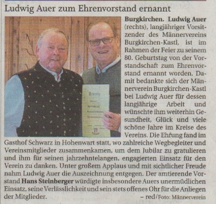 Unser 2. Vorstand und langjährger Vorstand Ludwig feierte am 22.2.2026 seinen 80igsten Geburtstag und wurde von der Vorstandschaft des Männervereins zum Ehrenvorstand geehrt.